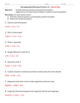Read Online Worksheet 3 Decomposition Reactions Answers PDF By Click Button. Worksheet 3 Decomposition Reactions Answers it’s easy to recommend a new book category such as Novel, journal, comic, magazin, ect. You see it and you just know that the designer is also an author and understands the challenges involved with having a good book. You can easy klick for detailing book and you can read it online, even you can download it